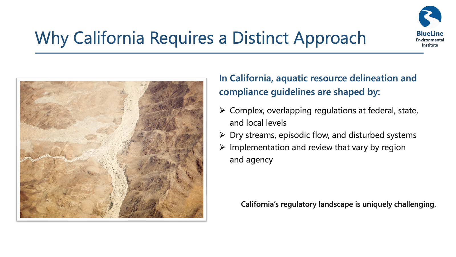 BlueLine develops applied environmental training informed by hands-on experience supporting California projects with wetland and stream considerations. Training is designed to help professionals better understand how delineation and permitting requirements intersect with project design, schedules, and approvals in real-world settings. Contact us: [email protected] Follow us on LinkedIn: https://www.linkedin.com/company/blueline-environmental-institute